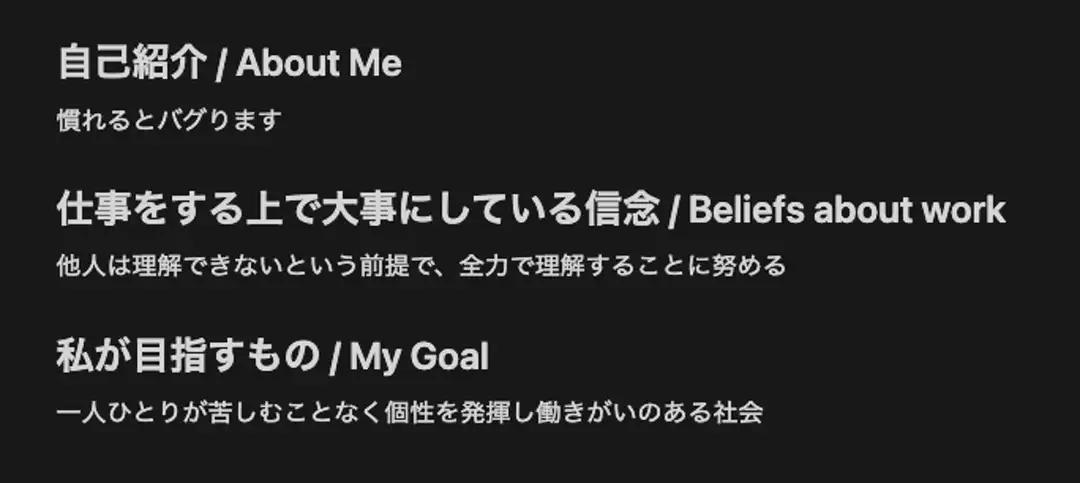 弊社ではNotionにメンバーのプロフィールページがあり、その中に「仕事をする上で大事にしている信念」という項目があるのですが、そこに「自責100%で行動する」と書くくらいには自責を盲信(?)していました。(現在は変わっています)