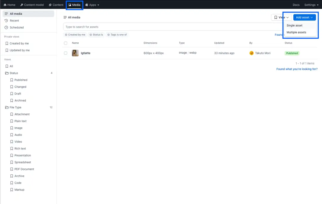 今回は画像を一覧で返してほしいだけなのでContent modelの定義はせずにMediaの追加のみ行います。