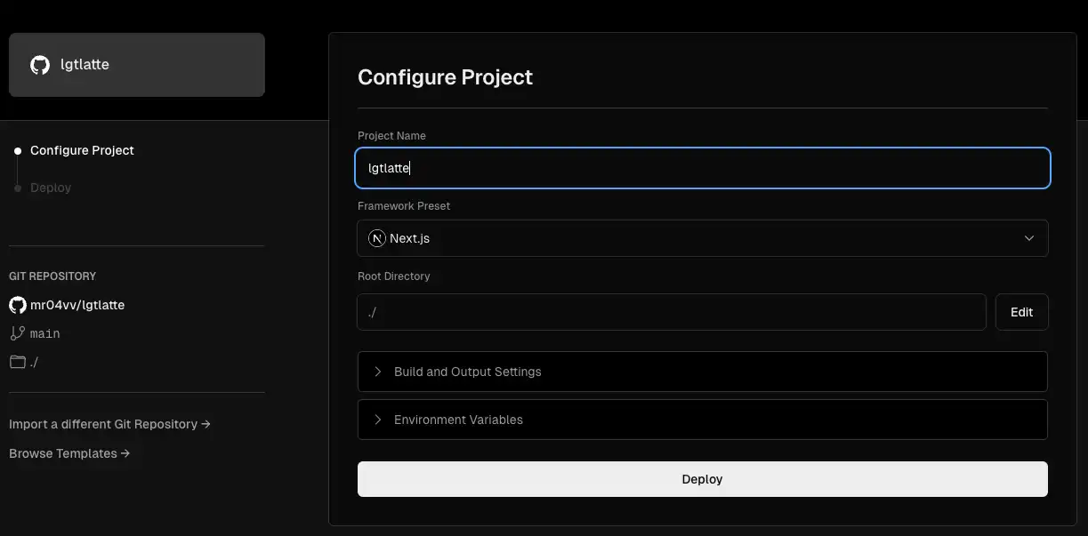 git push -u origin mainVercelでリポジトリを連携