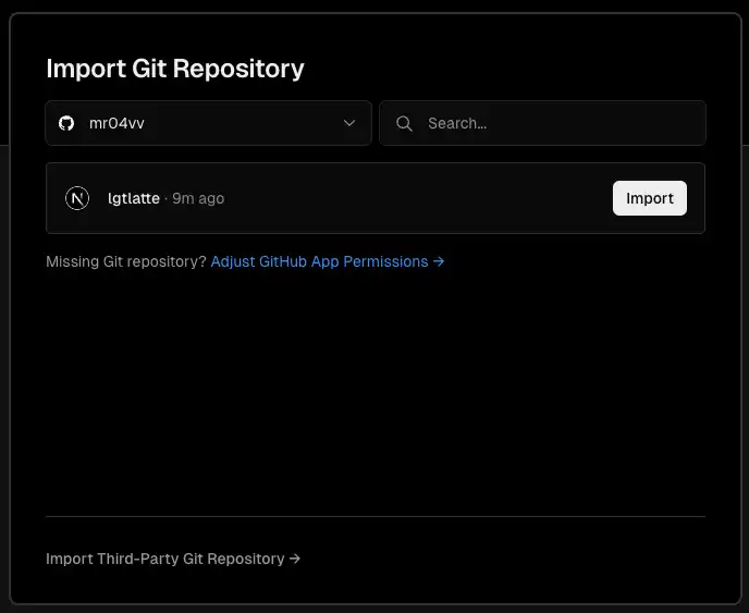 アカウントが連携されていれば、Importできるリポジトリの候補が出てきますのでImportをクリックします。